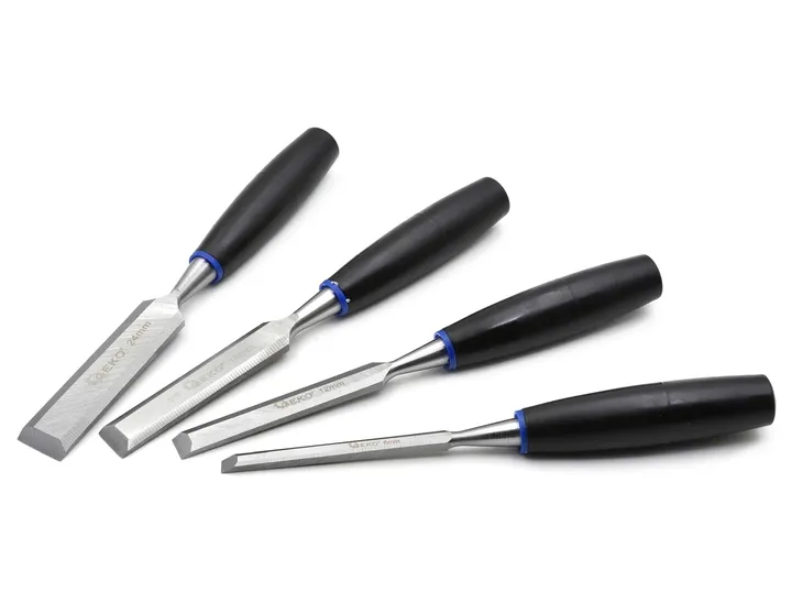 Zestaw dłut do drewna wykonanych z wysokogatunkowej stali, która dobrze trzyma ostrość, a jednocześnie jest łatwa w ostrzeniu. Dłuta posiadają ergonomiczną rękojeść wykonaną z wytrzymałego tworzywa sztucznego.