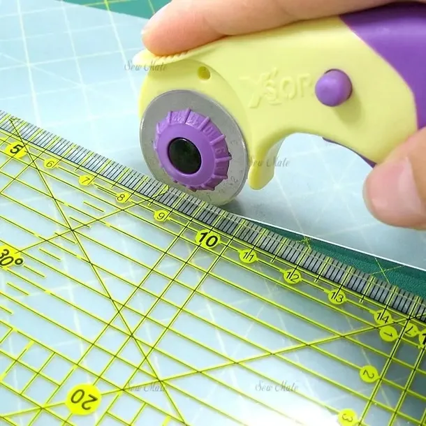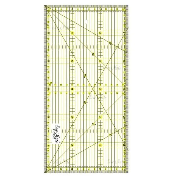 Przezroczysta linijka (liniał) z czytelnymi oznaczeniami do precyzyjnego cięcia i rysowania. Jest niezastąpiona przy krojeniu elementów patchworku, quiltingu oraz wszędzie tam gdzie potrzebujesz wyznaczyć równoległe linie czy kąty. Produkt posiada otwór umożliwiający jego zawieszenie.