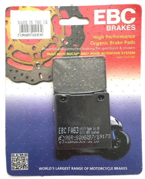 EBC FA Do stosowania w większości rodzajów motocykli, zawierają 6 razy twardsze od stali włókna aramidowe. Wykazują stabilny współczynnik tarcia. Gwarantują bardzo dobre właściwości hamujące, odporność na temperaturę i zadowalającą charakterystykę w warunkach deszczowych przy dość atrakcyjnej cenie. Wykazują minimalne zużycie tarcz. Nadają się do wszystkich rodzajów tarcz hamulcowych.Kraj pochodzenia - Wielka Brytania.