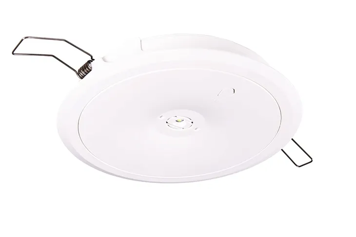 Lampa awaryjna Starlet ROUND zestaw z ramka umożliwiającą montaż oprawy podtynkowo.