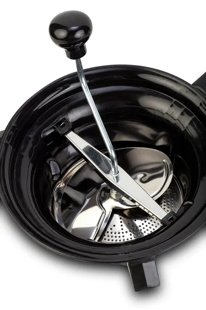 Wszechstronność i łatwość użytkowania: Wykonany z trwałego tworzywa sztucznego bezpiecznego dla żywności, młynek posiada trzy wymienne tarcze ze stali nierdzewnej o różnej gradacji, pozwalające na uzyskanie pożądanej konsystencji.